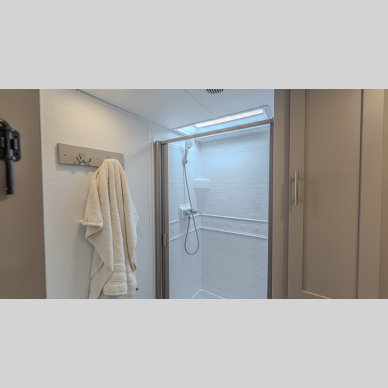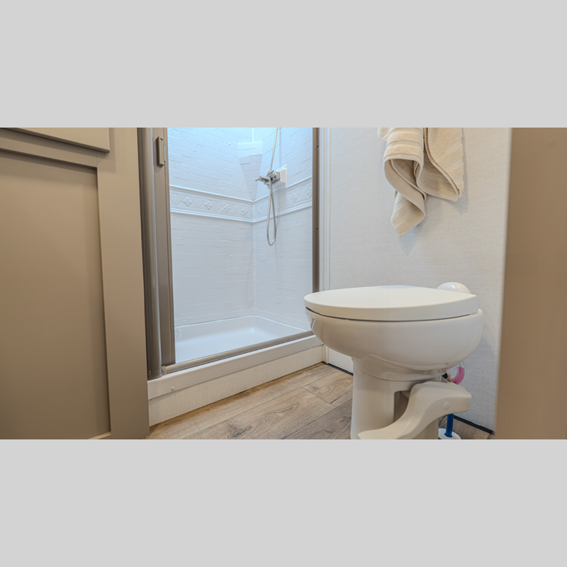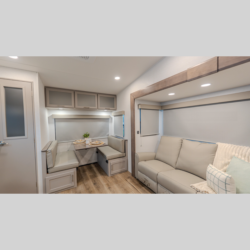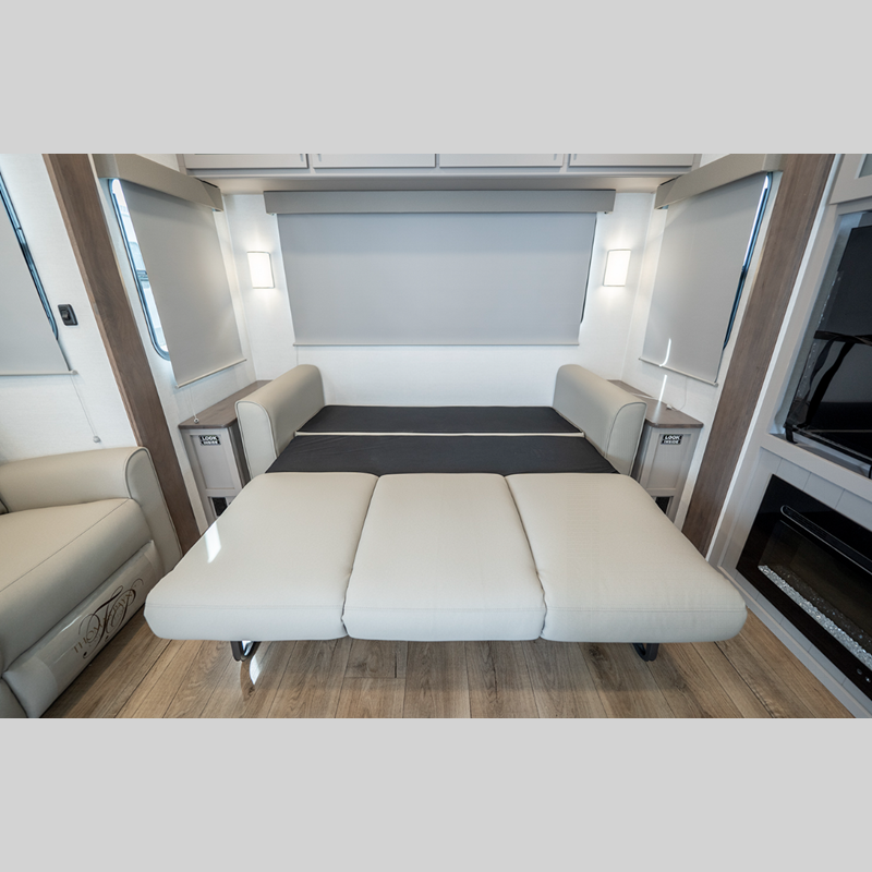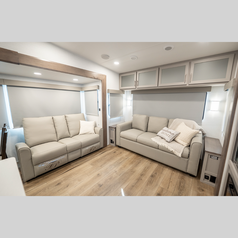 The composite sidewalls are ultra durable and the Benchmark chassis features a super saver upper deck. There are industry leading tank sizes, smart storage solutions, flush floor slide out floors throughout, and no carpet to make cleaning easier than ever.