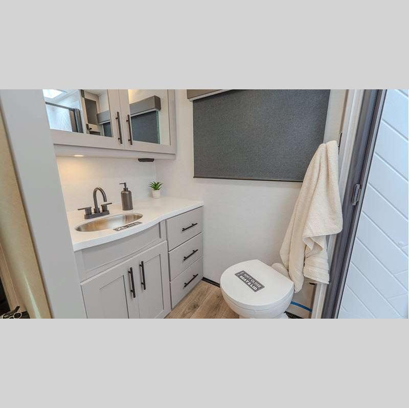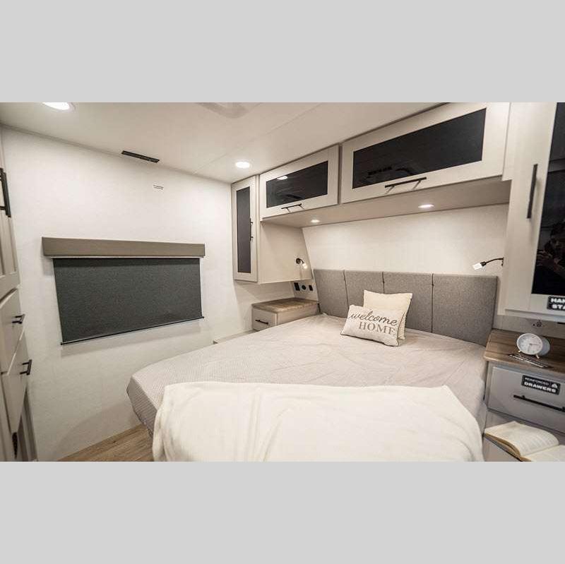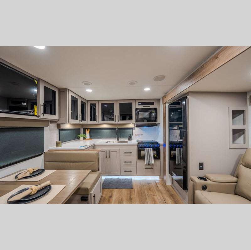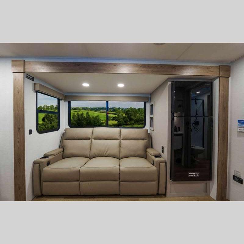 Sleeps 4 Slides 2 Length 33 ft 11 in Ext Height 11 ft 3 in Hitch Weight 802 lbs GVWR 9450 lbs Dry Weight 7486 lbs Fresh Water Capacity 45 gals Grey Water Capacity 90 gals Black Water Capacity 45 gals Available Beds Queen Refrigerator Type 12V Refrigerator Size 10 cu ft Cooktop Burners 3 Shower Size 30" x 36" Number of Awnings 2 TV Info LR 50" TV Awning Info 10' and 21' Axle Count 2 Shower Type Standard Electrical Service 50 amp Solar Wattage 400 watts Similar Floorplans