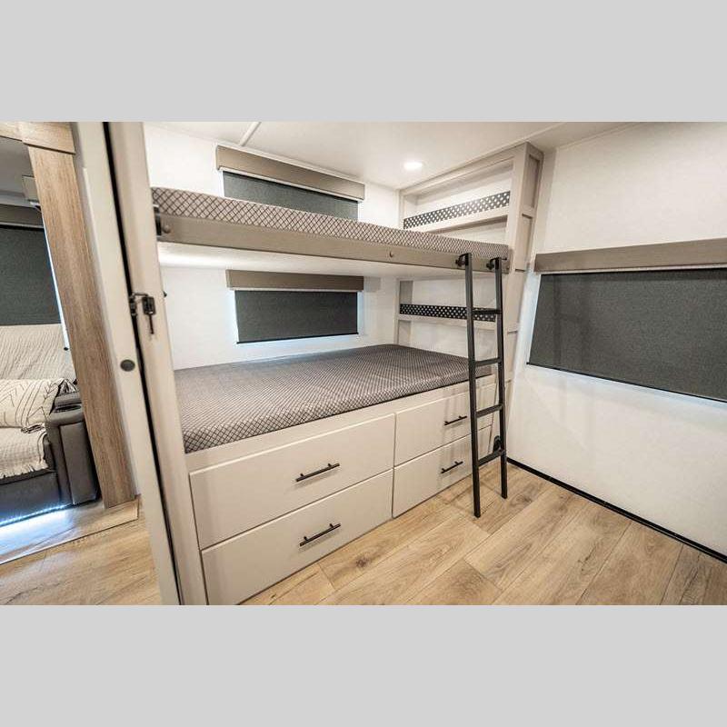 Sleeps 7 Slides 1 Length 33 ft 11 in Ext Width 0 ft Ext Height 11 ft 3 in Int Height 0 ft Hitch Weight 872 lbs GVWR 9250 lbs Dry Weight 7388 lbs Fresh Water Capacity 45 gals Grey Water Capacity 82 gals Black Water Capacity 45 gals Number Of Bunks 2 Available Beds Queen Refrigerator Type 12 Volt Refrigerator Size 10 cu ft Cooktop Burners 3 Shower Size 30" x 36" Number of Awnings 1 Cargo Deck Size 0 ft TV Info LR 40" TV Awning Info 21' Axle Count 2 Shower Type Standard Electrical Service 50 amp Solar Wattage 400 watts Similar Floorplans