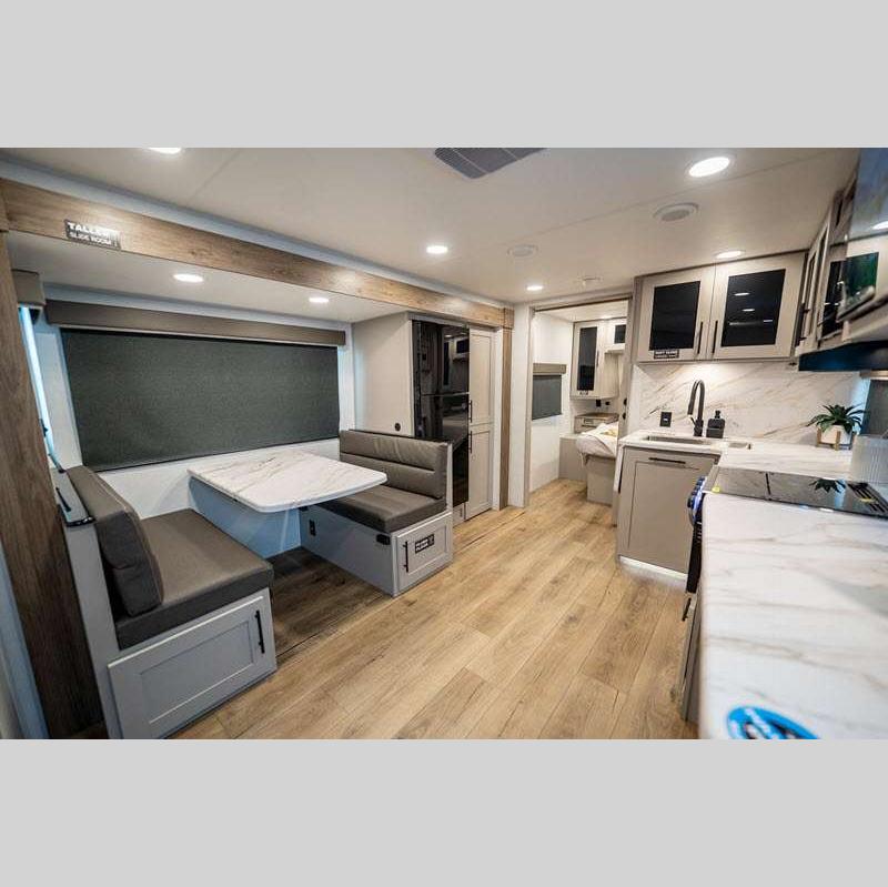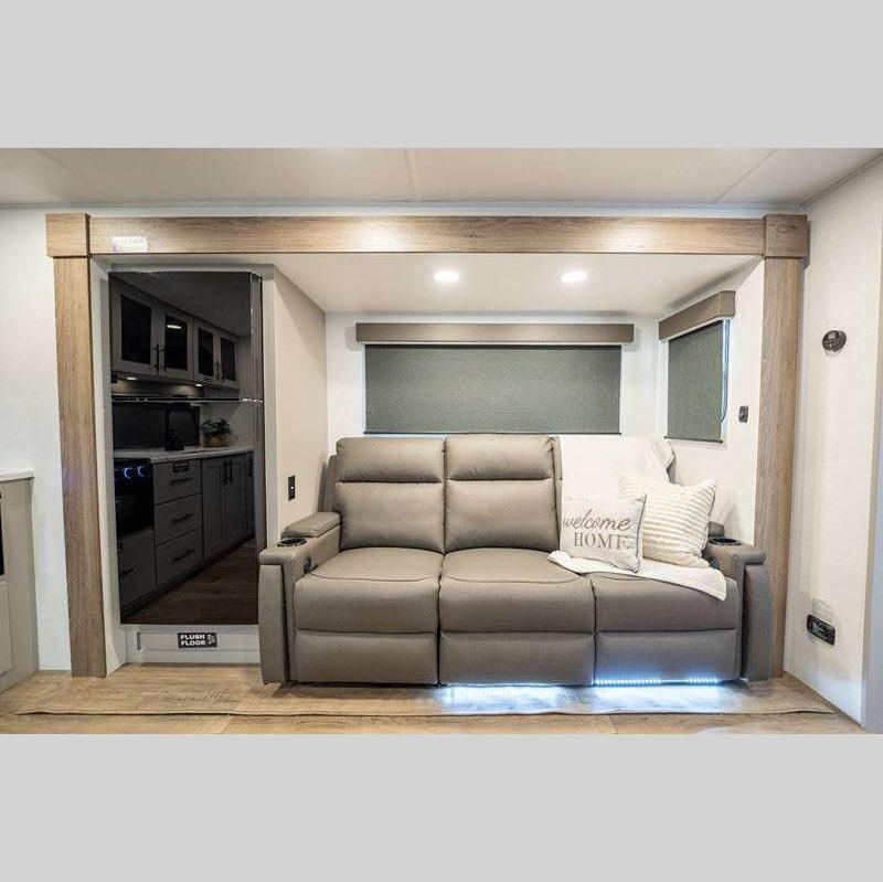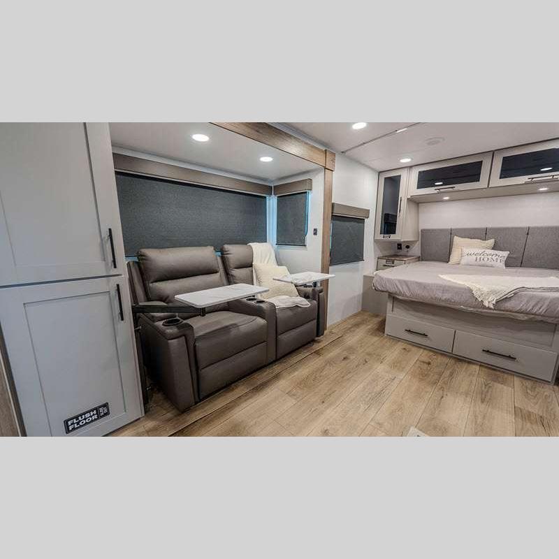Exterior highlights include Step Above steps on all doors, Goodyear Endurance tires, exterior awning controls, and more. Inside, you'll enjoy fully functional oversized atrium windows, soft closet hidden hinges, and no carpet to make cleaning up easier than ever.