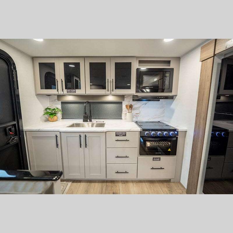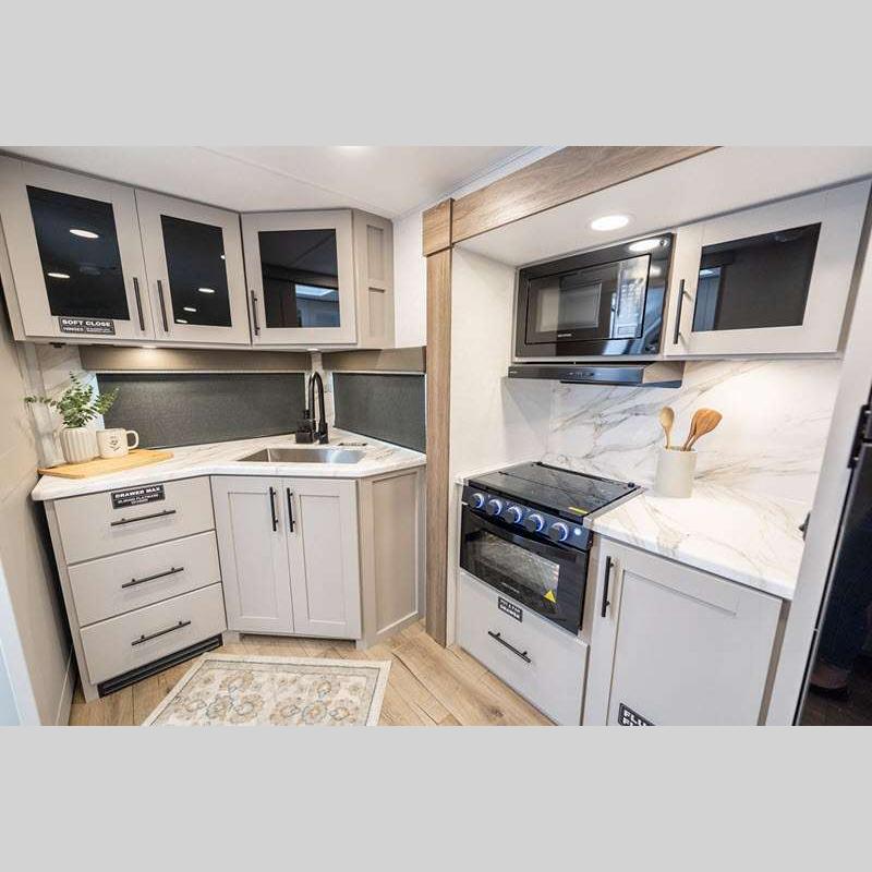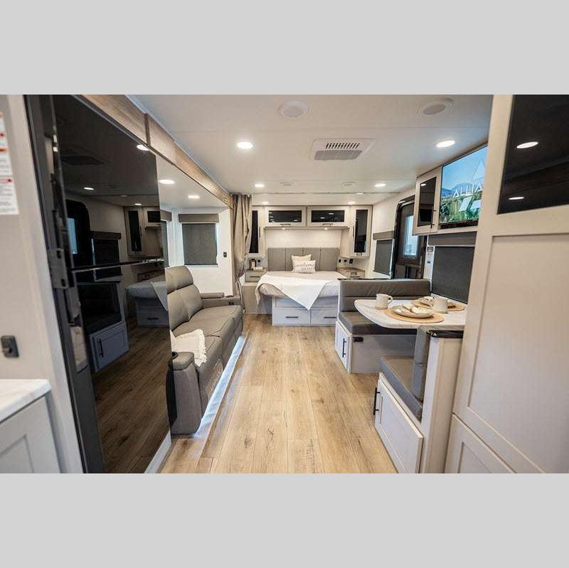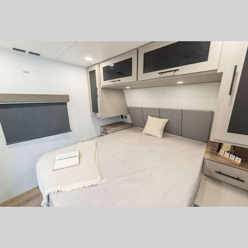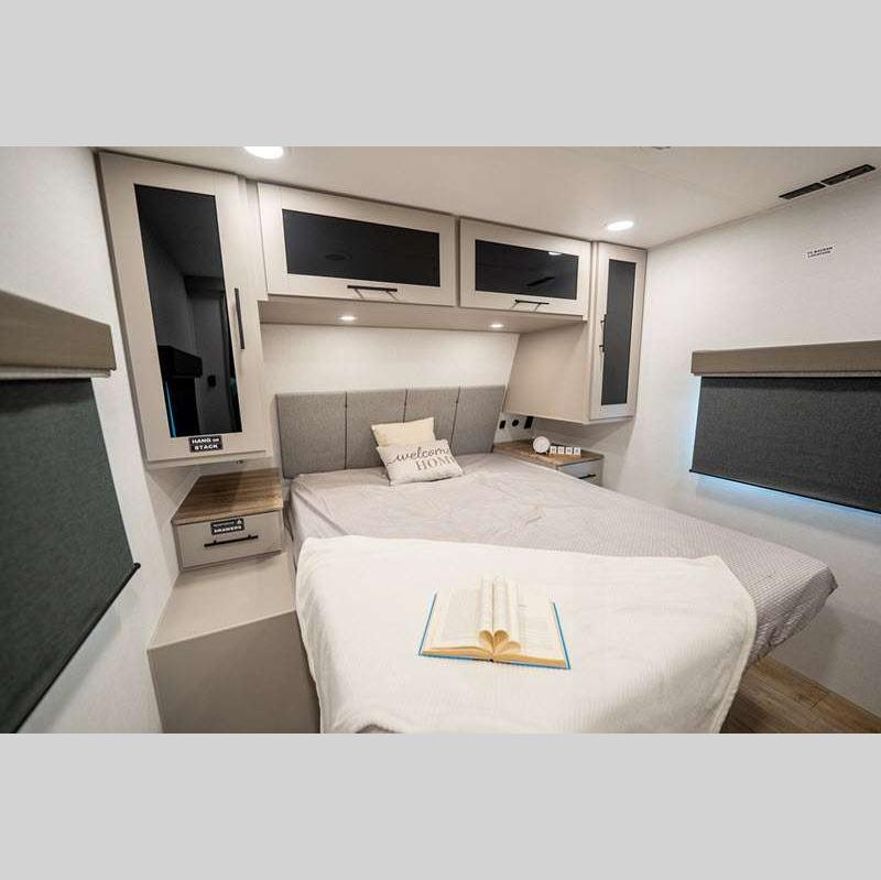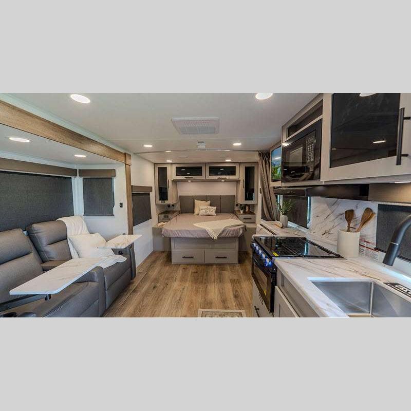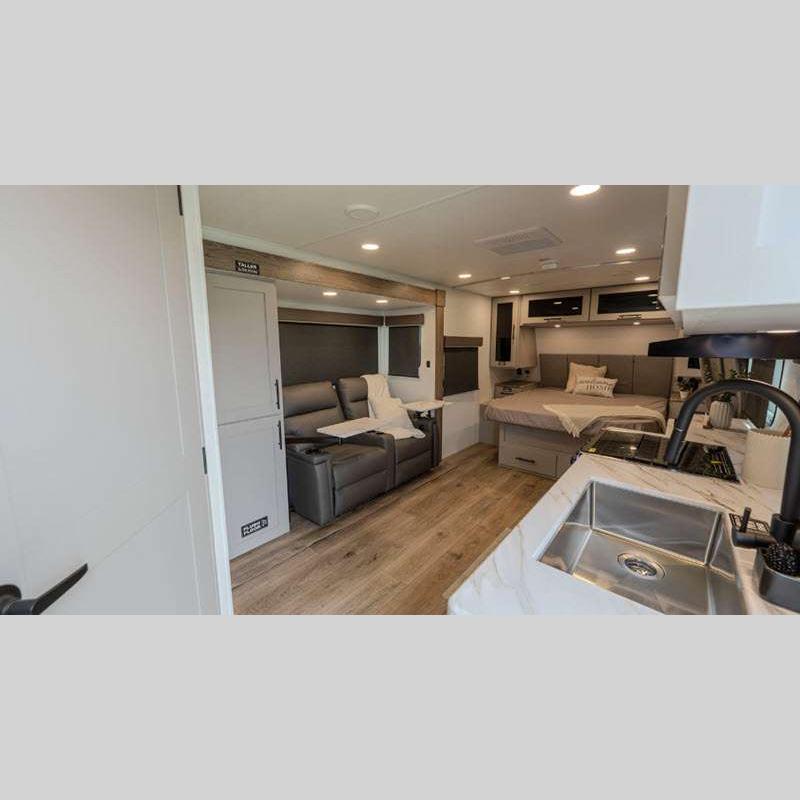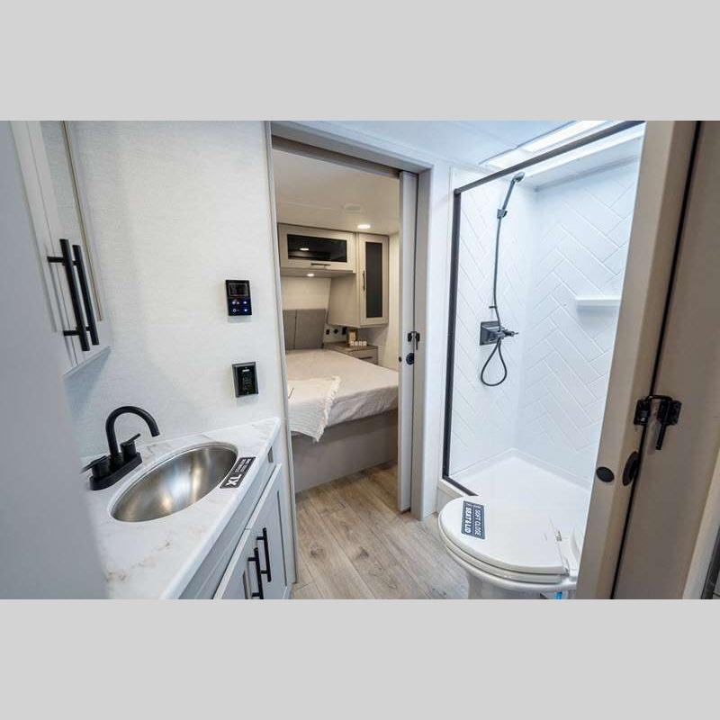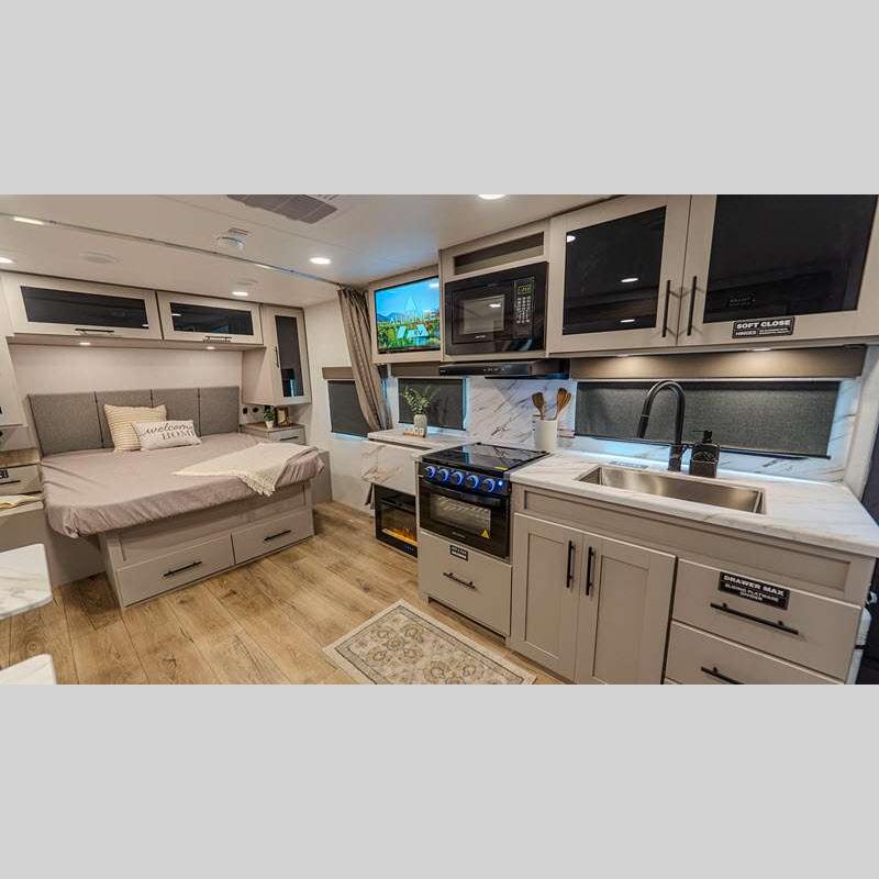 Sleeps 2 Slides 1 Length 23 ft 11 in Ext Height 10 ft 10 in Hitch Weight 568 lbs GVWR 7450 lbs Dry Weight 4992 lbs Fresh Water Capacity 45 gals Grey Water Capacity 45 gals Black Water Capacity 45 gals Available Beds Queen Refrigerator Type 12V Refrigerator Size 10 cu ft Cooktop Burners 3 Shower Size 32" Number of Awnings 1 Water Heater Type On Demand Tankless Awning Info 15' Axle Count 2 Shower Type Radius Solar Wattage 200 watts Similar Floorplans