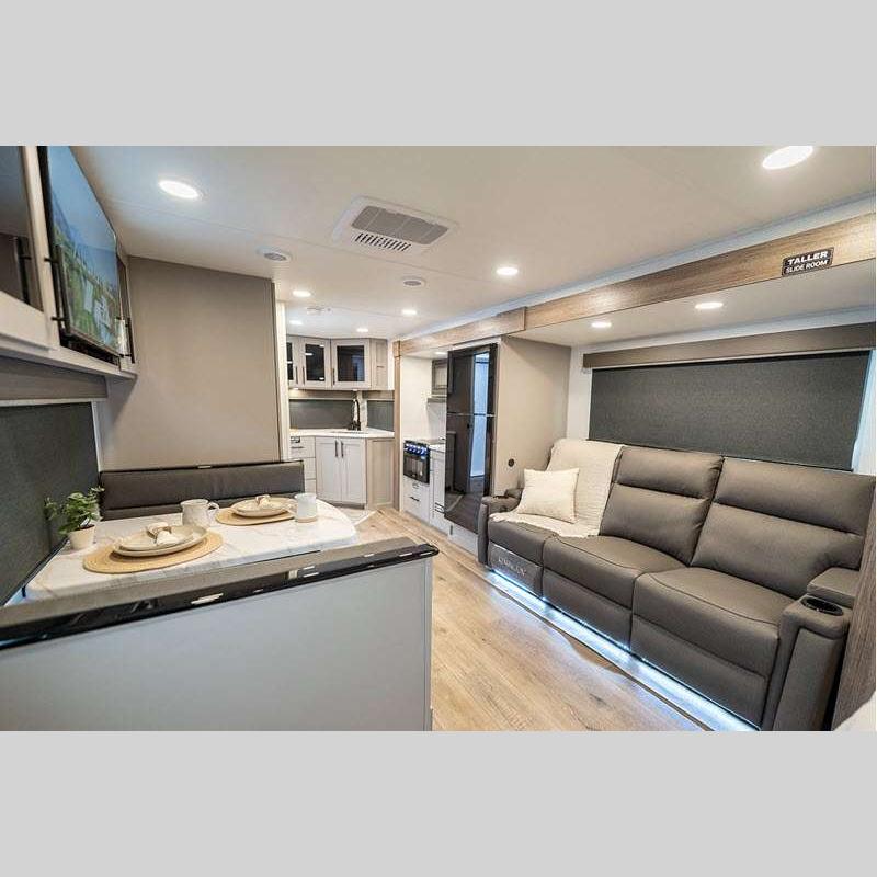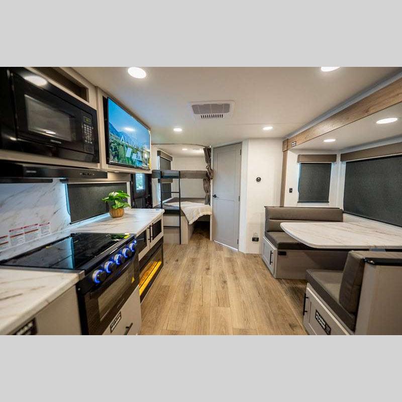 Sleeps 7 Slides 1 Length 31 ft 11 in Ext Height 11 ft Hitch Weight 689 lbs GVWR 8450 lbs Dry Weight 6295 lbs Fresh Water Capacity 45 gals Grey Water Capacity 82 gals Black Water Capacity 45 gals Number Of Bunks 2 Available Beds Queen Refrigerator Type 12V Refrigerator Size 10 cu ft Cooktop Burners 3 Shower Size 30" x 36" Number of Awnings 1 Water Heater Type On Demand Tankless TV Info LR 40" TV Awning Info 19' Axle Count 2 Shower Type Standard Solar Wattage 200 watts Similar Floorplans