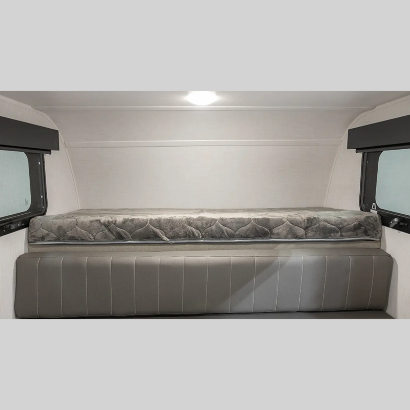 Sleeps 3 Length 14 ft 11 in Ext Width 7 ft 4 in Ext Height 7 ft 3 in Hitch Weight 290 lbs Dry Weight 2243 lbs Cargo Capacity 687 lbs Fresh Water Capacity 20 gals Grey Water Capacity 6 gals Tire Size 15" Furnace BTU 20000 btu Number Of Bunks 1 Refrigerator Type 12V Convection Cooking Yes Number of Awnings 1 LP Tank Capacity 20 lbs Water Heater Type On Demand AC BTU 11000 btu Awning Info 10' Thule Power Axle Count 1 Number of LP Tanks 2 Shower Type N/A Similar Floorplans