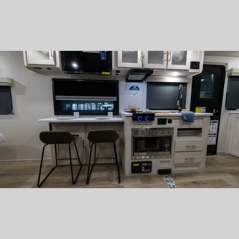 Sleeps 7 Length 25 ft Ext Width 8 ft Ext Height 10 ft 6 in Hitch Weight 585 lbs Dry Weight 4544 lbs Cargo Capacity 1500 lbs Fresh Water Capacity 30 gals Grey Water Capacity 30 gals Black Water Capacity 30 gals Number Of Bunks 2 Available Beds Murphy Queen Refrigerator Type 12V Black Glass Convection Cooking Yes Cooktop Burners 2 Number of Awnings 1 Water Heater Type Tankless AC BTU 15000 btu TV Info 12V TV Awning Info 16' Power Axle Count 1 Shower Type Standard Electrical Service 30 amp Similar Floorplans