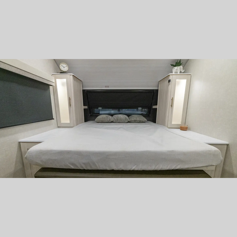Sleeps 2 Slides 1 Length 25 ft 6 in Ext Width 8 ft Ext Height 10 ft 7 in Hitch Weight 415 lbs Dry Weight 4729 lbs Cargo Capacity 1500 lbs Fresh Water Capacity 30 gals Grey Water Capacity 30 gals Black Water Capacity 30 gals Available Beds Queen Refrigerator Type 12V Black Glass Convection Cooking Yes Cooktop Burners 2 Number of Awnings 1 Water Heater Type Tankless AC BTU 15000 btu TV Info 12V TV Awning Info 13' Power Shower Type Standard Electrical Service 30 amp Similar Floorplans