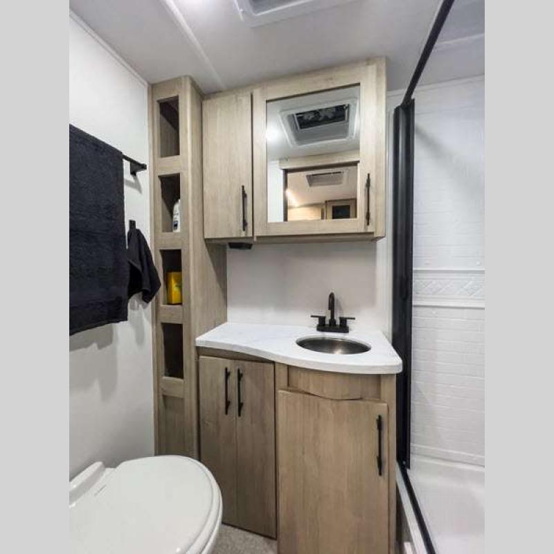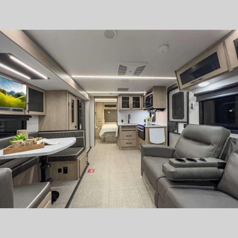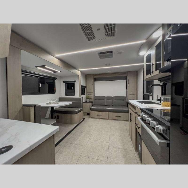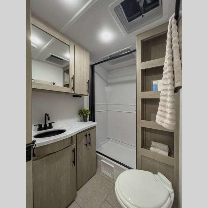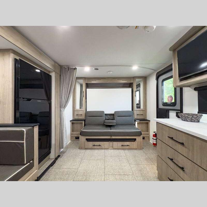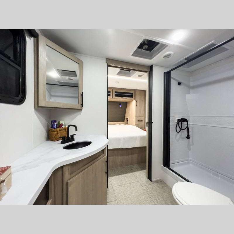 Sleeps 5 Slides 2 Length 25 ft 4 in Ext Width 8 ft Ext Height 10 ft 10 in Int Height 6 ft 6 in Hitch Weight 616 lbs GVWR 6995 lbs Dry Weight 5698 lbs Fresh Water Capacity 37 gals Grey Water Capacity 45 gals Black Water Capacity 37 gals Tire Size ST205/75R14LRD Furnace BTU 25000 btu Number Of Bunks 2 Available Beds Murphy Refrigerator Type 12V Refrigerator Size 10 cu ft Cooktop Burners 3 Shower Size 27" x 36" Number of Awnings 1 LP Tank Capacity 20 lbs Water Heater Type Tankless AC BTU 15000 btu TV Info LR LED HDTV Awning Info 18' Power w/LED Light Axle Count 2 Number of LP Tanks 2 Shower Type Walk-In Shower Electrical Service 30 amp Solar Wattage 200 watts Similar Floorplans