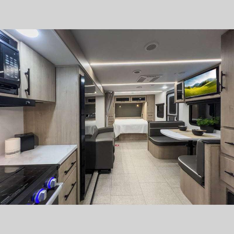 Sleeps 3 Slides 1 Length 29 ft 9 in Ext Width 8 ft Ext Height 10 ft 10 in Int Height 6 ft 6 in Hitch Weight 636 lbs GVWR 6186 lbs Dry Weight 7995 lbs Fresh Water Capacity 37 gals Grey Water Capacity 45 gals Black Water Capacity 37 gals Tire Size ST205/75R14LRD Furnace BTU 25000 btu Available Beds Queen Refrigerator Type 12V Refrigerator Size 10 cu ft Cooktop Burners 3 Shower Size 27" x 36" Number of Awnings 1 LP Tank Capacity 20 lbs Water Heater Type Tankless AC BTU 15000 btu TV Info LR LED HDTV Awning Info 22' Power w/LED Light Axle Count 2 Number of LP Tanks 2 Shower Type Walk-In Shower Electrical Service 30 amp Solar Wattage 200 watts Similar Floorplans