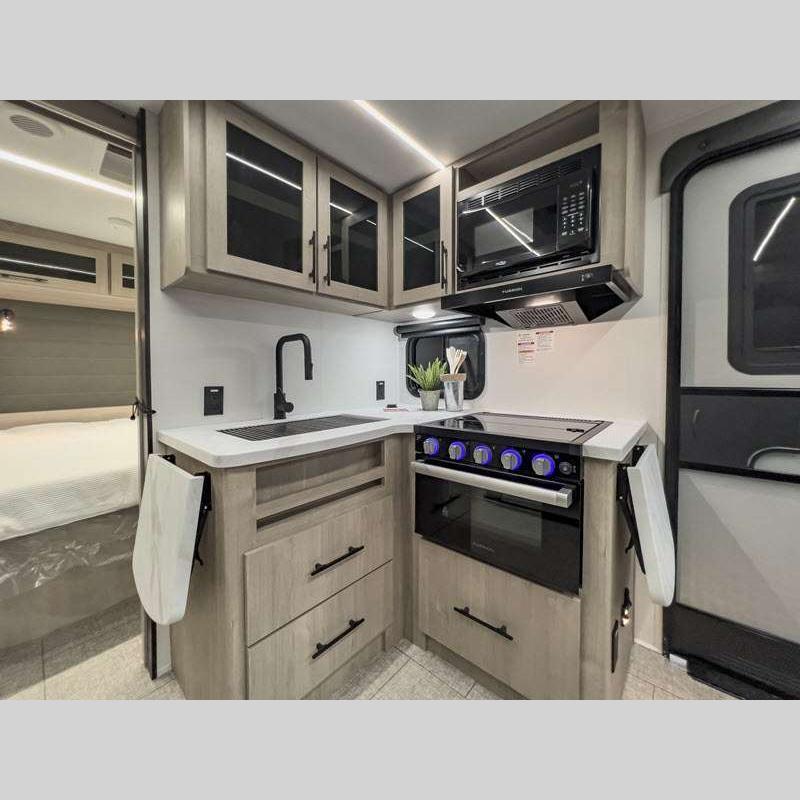 Sleeps 3 Slides 1 Length 26 ft 1 in Ext Width 8 ft Ext Height 10 ft 10 in Int Height 6 ft 6 in Hitch Weight 608 lbs GVWR 6995 lbs Dry Weight 5423 lbs Fresh Water Capacity 37 gals Grey Water Capacity 45 gals Black Water Capacity 37 gals Tire Size ST205/75R14LRD Furnace BTU 25000 btu Available Beds Queen Refrigerator Type 12V Refrigerator Size 10 cu ft Cooktop Burners 3 Shower Size 27" x 36" Number of Awnings 1 LP Tank Capacity 20 lbs Water Heater Type Tankless AC BTU 15000 btu TV Info LR LED HDTV Awning Info 18' Power w/LED Light Axle Count 2 Number of LP Tanks 2 Shower Type Walk-In Shower Electrical Service 30 amp Solar Wattage 200 watts Similar Floorplans