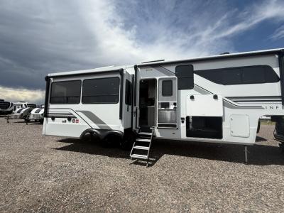 Any Grand Design Influence fifth wheel features five-sided aluminum cage construction with a walk-on roof and a fully enclosed underbelly with heated tanks and storage for all weather camping. For peace of mind, the MORryde CRE3000 Suspension system will provide safe and smooth towing, and the 101" widebody construction offers all the room you need and that is before multiple slides are fully engaged. You will appreciate the Keyed-Alike locks, slam-latch baggage doors with magnetic door catches, exterior security light, and SolidStep entry steps. On the inside, Congoleum flooring, premium roller shades for privacy, a hallway handrail for safety, and nightstands with USB ports to keep all of your electronics fully charged. You will also love the On Demand tankless water heater when showering, plus the added heat and ambiance from an electric fireplace, and so much more!