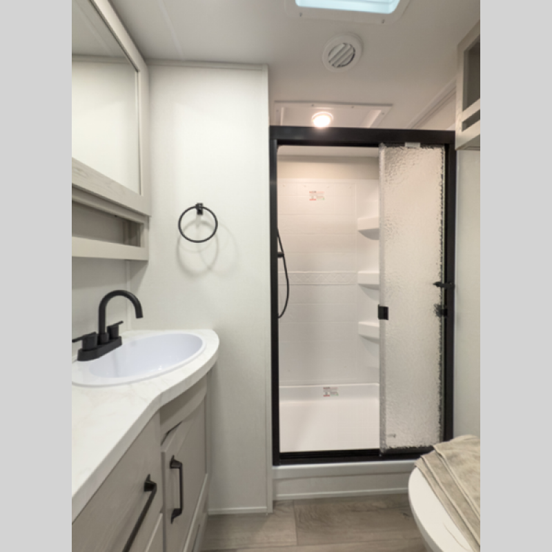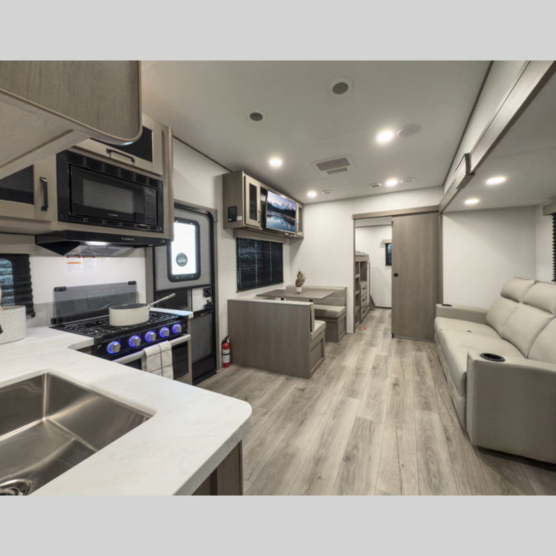 Sleeps 3 Slides 1 Length 30 ft Ext Width 8 ft Ext Height 12 ft Hitch Weight 950 lbs GVWR 9995 lbs Dry Weight 7664 lbs Fresh Water Capacity 55 gals Grey Water Capacity 78 gals Black Water Capacity 39 gals Tire Size ST225/75R15 LRE Furnace BTU 30000 btu Available Beds Queen Refrigerator Type 12V Refrigerator Size 10 cu ft Cooktop Burners 3 Shower Size 30" x 36" Number of Awnings 1 LP Tank Capacity 30 lbs Water Heater Type On Demand Tankless TV Info LR 40" High-Definition LED TV Awning Info 19' One Touch Electric LED Axle Count 2 Number of LP Tanks 2 Shower Type Walk-In Shower Electrical Service 50 amp Similar Floorplans