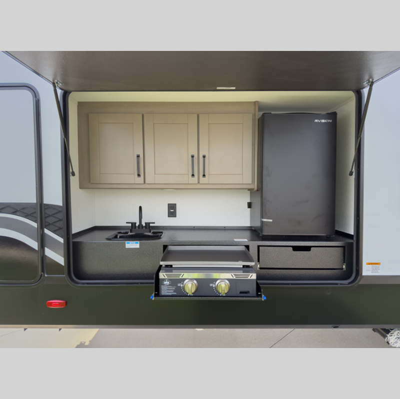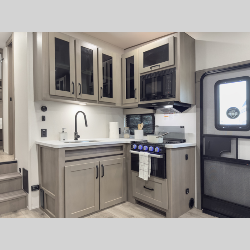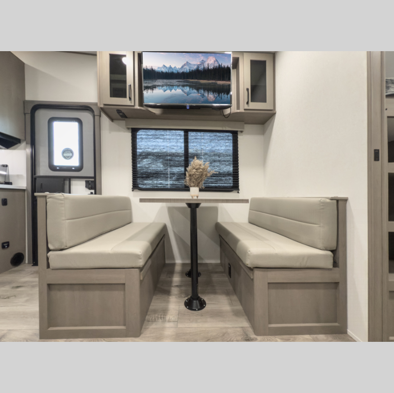 You will be able to enjoy your fifth wheel for years to come since there are full laminated walls, a double insulated roof, front cap, and floor, plus gel coated exterior sidewalls. The Arctic 4-Seasons Protection Package will allow you to camp during the colder months or even go full-time, and the Solar Package will provide off-grid capabilities! There are two additional packages; the Peace of Mind Package and Ultimate Power Package that include residential cabinetry and pleated shades, a "one-touch" electric awning with LED lights, and a Compass Connect system to stay informed on all your units functions!