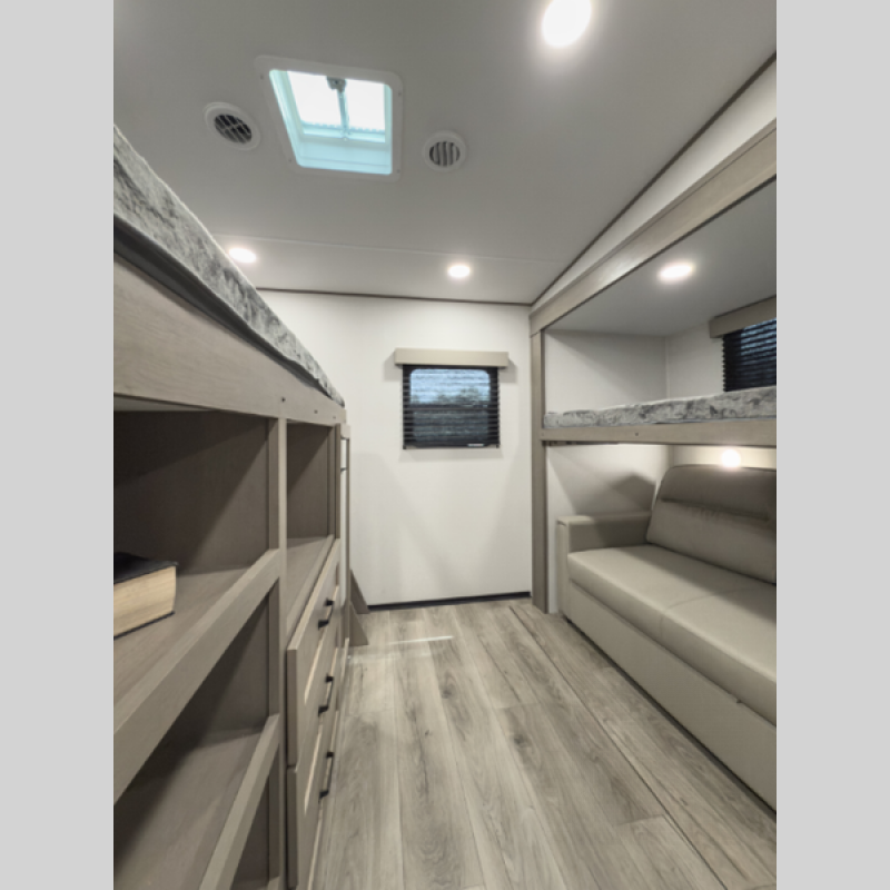 Sleeps 10 Slides 1 Length 32 ft 3 in Ext Width 8 ft Ext Height 12 ft 3 in Hitch Weight 1280 lbs GVWR 10195 lbs Dry Weight 8200 lbs Fresh Water Capacity 55 gals Grey Water Capacity 78 gals Black Water Capacity 39 gals Tire Size ST225/75R15 LRE Furnace BTU 30000 btu Number Of Bunks 2 Available Beds Queen Refrigerator Type 12V Refrigerator Size 10 cu ft Cooktop Burners 3 Shower Size 30" x 36" Number of Awnings 1 LP Tank Capacity 30 lbs Water Heater Type On Demand Tankless AC BTU 15000 btu TV Info LR 40" High-Definition LED TV Awning Info 20' One Touch Electric LED Axle Count 2 Number of LP Tanks 2 Shower Type Walk-In Shower Electrical Service 50 amp Similar Floorplans
