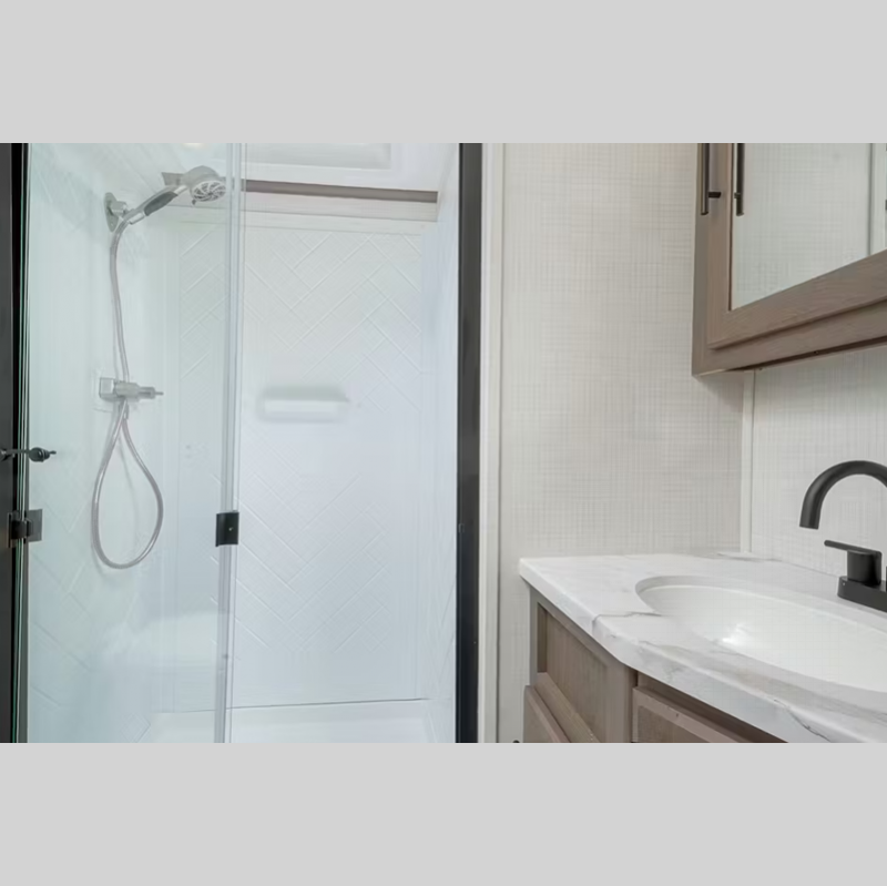 - Large shower w/ retractable shower door and skylight