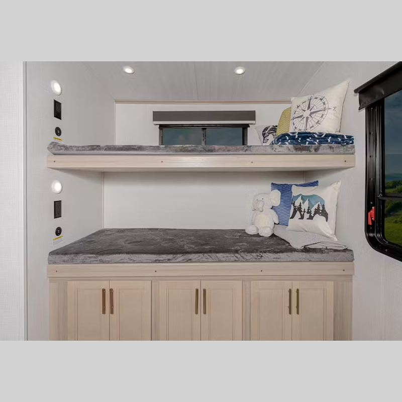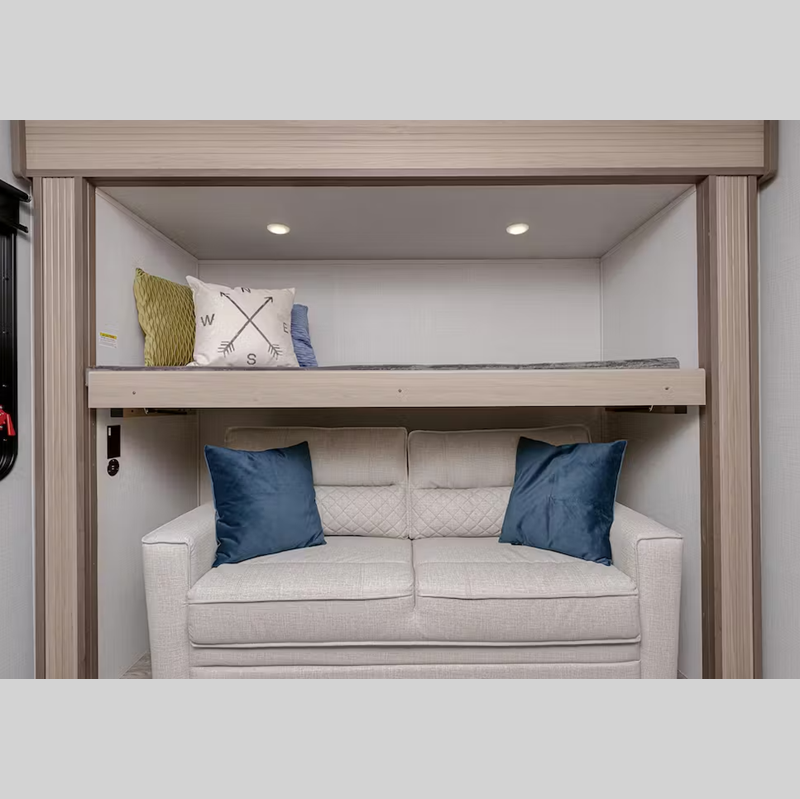 • Queen size bed w/ built-in pet kennel storage (select models)