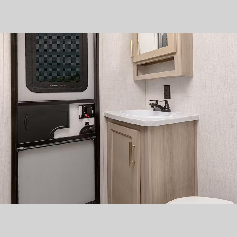 • Friction-hinge entry door w/ self closing screen door and oversized grab handle (select models)