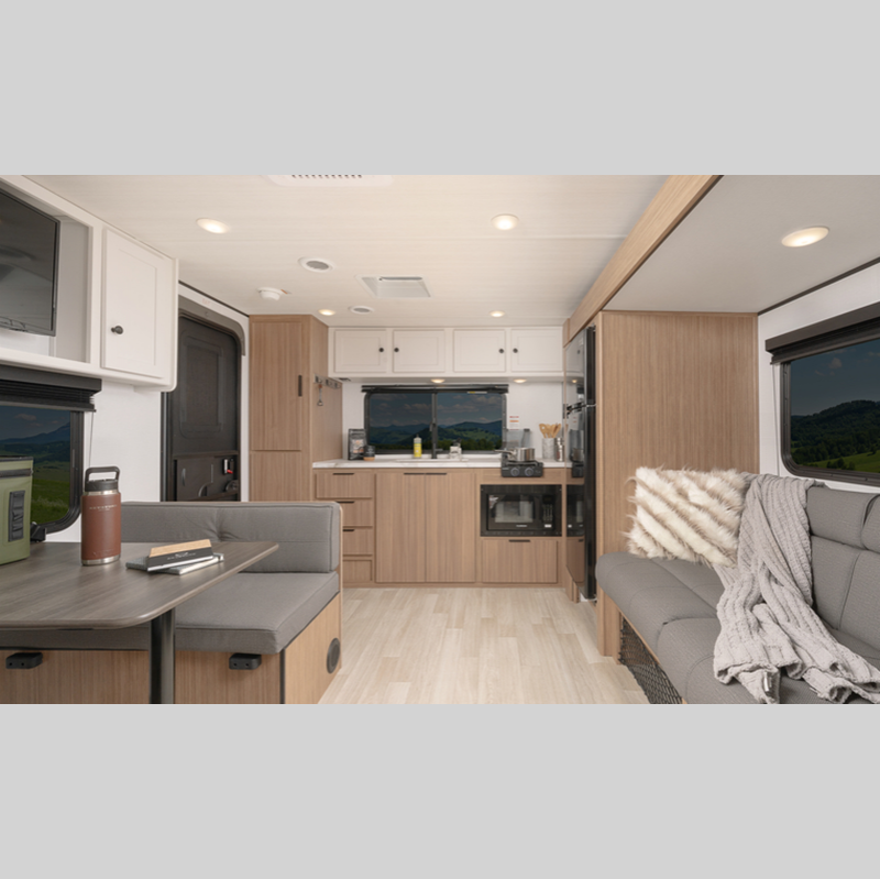 Sleeps 4 Length 21 ft 11 in Ext Height 10 ft 5 in Interior Color Cedar Frost Hitch Weight 400 lbs Dry Weight 3640 lbs Cargo Capacity 1160 lbs Fresh Water Capacity 37 gals Grey Water Capacity 30 gals Black Water Capacity 30 gals Tire Size ST235/75R15C Furnace BTU 20000 btu Available Beds Queen Refrigerator Type Large Double Door 12V Refrigerator Size 8 cu ft Cooktop Burners 2 Number of Awnings 1 LP Tank Capacity 20 lbs Water Heater Type Girard Tankless AC BTU 13500 btu Axle Count 1 Number of LP Tanks 1 Shower Type Standard Similar Floorplans
