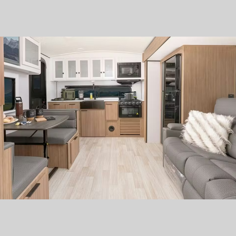 Sleeps 4 Slides 1 Length 30 ft 8 in Ext Height 11 ft 3 in Interior Color Cedar Frost Hitch Weight 700 lbs Dry Weight 6433 lbs Cargo Capacity 2067 lbs Fresh Water Capacity 54 gals Grey Water Capacity 38 gals Black Water Capacity 38 gals Tire Size ST205/75R14D Furnace BTU 30000 btu Available Beds Queen Refrigerator Type Double Door 12V Refrigerator Size 10 cu ft Cooktop Burners 3 Number of Awnings 1 LP Tank Capacity 20 lbs Water Heater Type Girard Tankless AC BTU 13500 btu Awning Info 19' Axle Count 2 Number of LP Tanks 2 Shower Type Standard Similar Floorplans